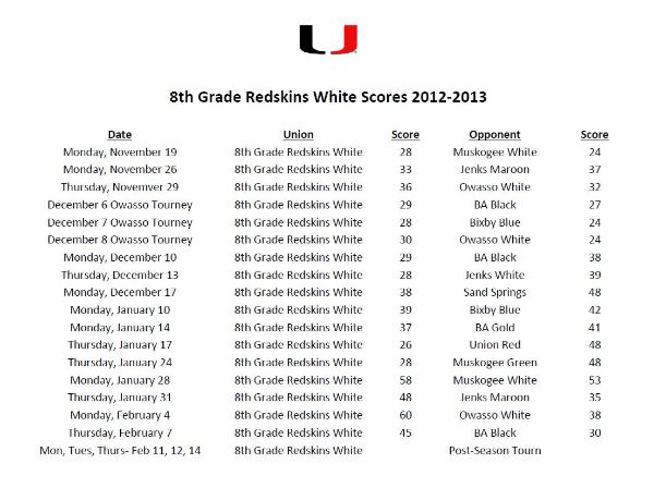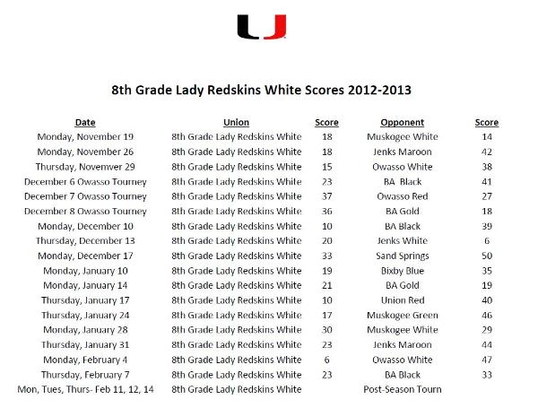 8th Grade-White Team Lady Redskins and Redskins Scoreboard