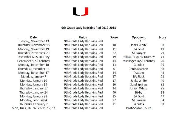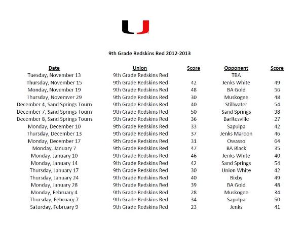 9th Grade-Red Lady Redskins and Redskins Scoreboard