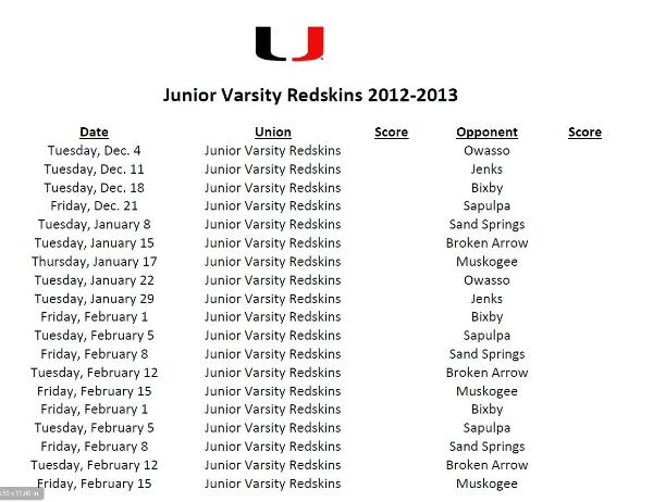 JV Lady Redskins and Redskins Scoreboard