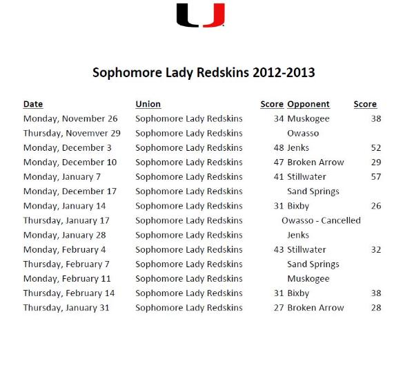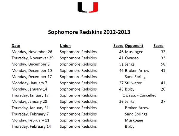 Sophomore Lady Redskins and Redskins Scoreboard
